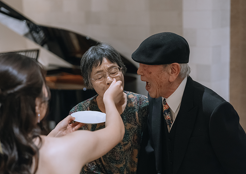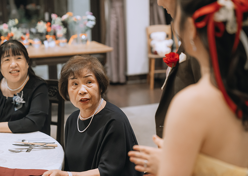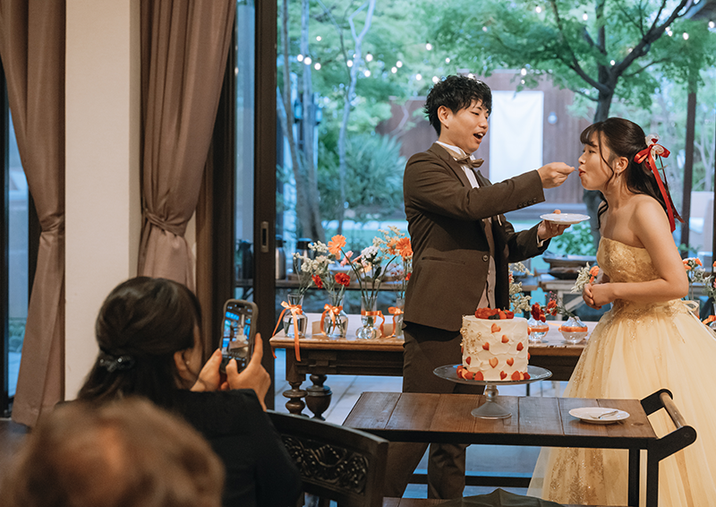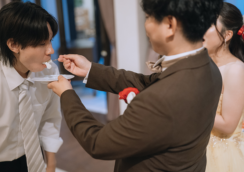 続くケーキセレモニーでは、幸せいっぱいのファーストバイトに続き、心温まるサプライズを用意 。翌日の「敬老の日」にちなんだ祖父母様へのサンクスバイトや、誕生日が近いゲストへのバースデーバイトを贈り、会場は優しい笑顔に包まれました 。