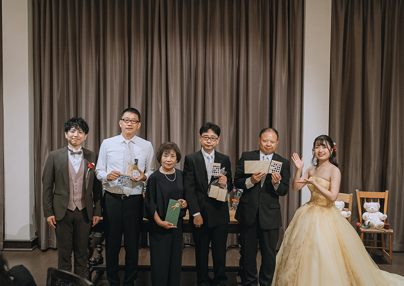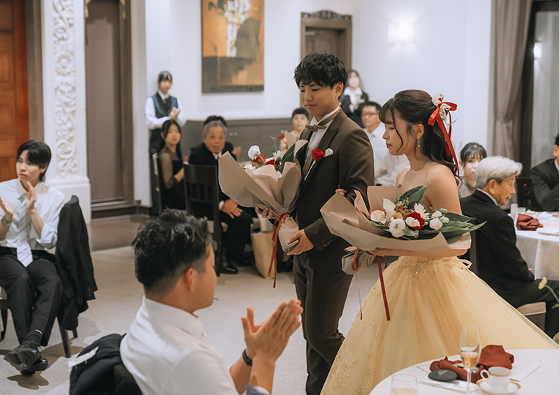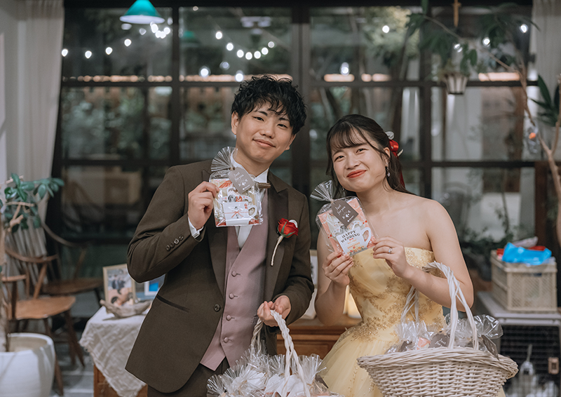 お見送りの際にはお二人から紅茶のプチギフトを添えて、最後まで「ありがとう」が溢れる素敵な時間となりました。
